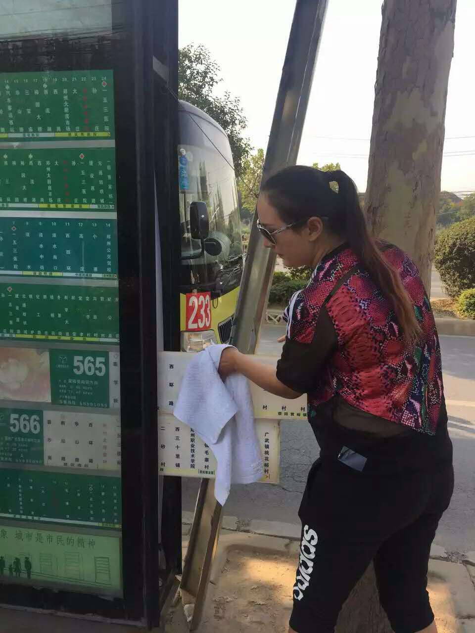 雖然說已經進入了秋季,但白天氣溫還是高于30℃,日照光線還是很強,可是我們勤勞的小蜜蜂們完全把這些拍之腦后,用他們勤勞的雙手去打掃著一座座的公交站牌,此時此刻小編我看著他們辛苦的勞動只能在背后默默地給他們加油打氣,好想好想對這些可愛可敬的人說聲”幸苦了,我親愛的同事們“,你是我們的驕傲、學習的榜樣!