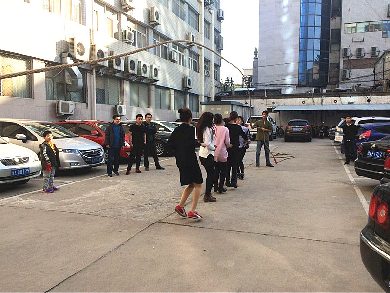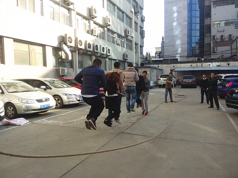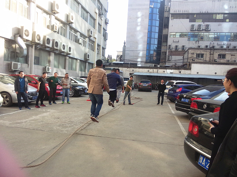 經公司商議決定上周六上午在樓下一樓停車場舉辦公司首屆“跳大繩比賽”。